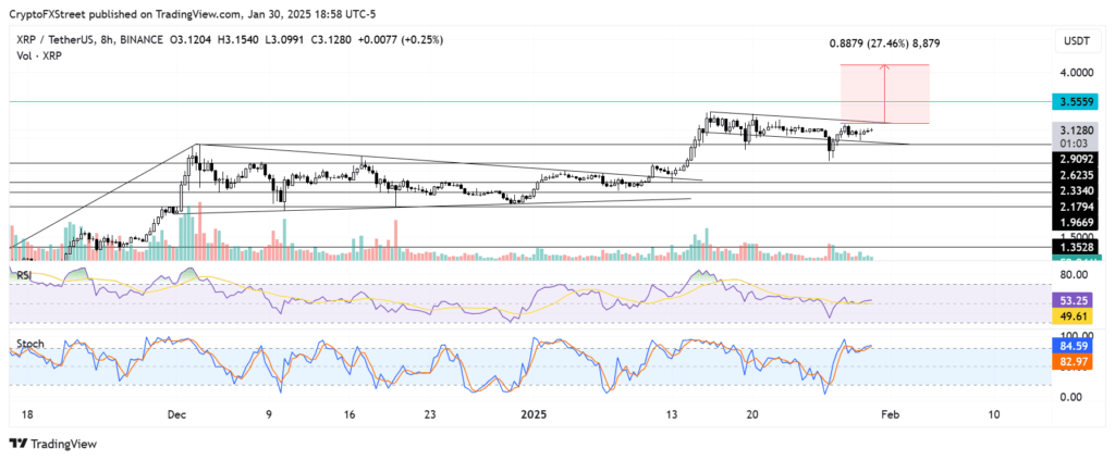 For XRP to achieve a 27% rally, it must break through its upper boundary resistance and hold it as support. The token’s all time high resistance sits at $3.55, and a successful breakout could see XRP soar to a new all time high of $4.10.